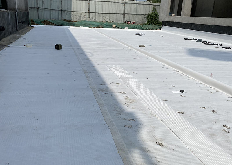 ⑤長效復合排水板材質(zhì)為HDPE(高密度聚乙烯)純原料,不添加任何再生料,不分解、不降解,柔韌性、抗拉性能能好。