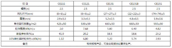 土工網(wǎng): 是高密度聚乙烯經(jīng)擠壓成方形、菱形、六邊形網(wǎng)格狀的產(chǎn)品,具有一定的拉伸強(qiáng)度和耐久性、化學(xué)穩(wěn)定性、耐候性、耐腐蝕等性能。因此可廣泛應(yīng)用于巖土工程的諸多方面。該產(chǎn)品規(guī)格齊全,在此,僅介紹CE131和CE151兩種用途最廣的土工網(wǎng)。 用途: CE131 1. 用于路基補(bǔ)強(qiáng),使粒狀填料與網(wǎng)格互相鎖合在一起,形成穩(wěn)定的平面,防止填料下陷,并可將垂直載苛分散,地理?xiàng)l件惡劣地區(qū)可采用多層補(bǔ)強(qiáng); 2. 鋪于堤壩及路基填土中能增加它的穩(wěn)定性,減少占地面積; 3. 用于路面補(bǔ)強(qiáng),使網(wǎng)格與路面材料摻合在一起,可以有效地分散傳遞載荷,防止路面裂紋; 4. 可承受一定沖擊載荷; 5. 可承受較大的交變載荷; 6. 縮短工程建設(shè)周期; 7. 在惡劣環(huán)境條件下,也能施工; 8. 可防止翻漿造成的路面沉陷和裂紋; 9. 可減少路面材料用量; 10. 加快施工速度。 CE151 1. 堤壩及巖石表面的防護(hù)。以防止侵蝕作用,避免產(chǎn)生塌方、巖石松動和水土流失; 2. 河、道岸治理工程,因具有柔韌性強(qiáng)、滲透性好、不受海水侵蝕,并能吸收波浪沖擊能量,故可做成矩形、方形或管狀石 籠,直接安裝在水下,起導(dǎo)流和防護(hù)作用,施工時不需要費(fèi)用昂貴的潛水作業(yè); 3. 隧洞周壁的噴錨防護(hù)網(wǎng)。 產(chǎn)品規(guī)格及性能參數(shù):